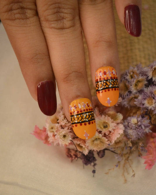 Garba Night Orange and Maroon Silicone Press-On Nails